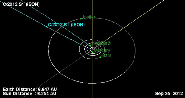 尽管新彗星C/2012 S1 (ISON)在被发现时仍位于木星轨道之外,视星等仅为18.8等,一般天文望远镜很难发现。但在接下来的一年里它的亮度将不断增强。根据轨道计算预测,新彗星C/2012 S1 (ISON)将于2013年11月28日在距离太阳仅0.012天文单位(约180万公里)的地方近距离掠过,并在2014年1月初将在距离地球0.4天文单位(约4千万公里)以内的空间飞过。而这也意味着在2013年11月至2014年1月之间,新彗星C/2012 S1 (ISON)星将达到肉眼可见的亮度。