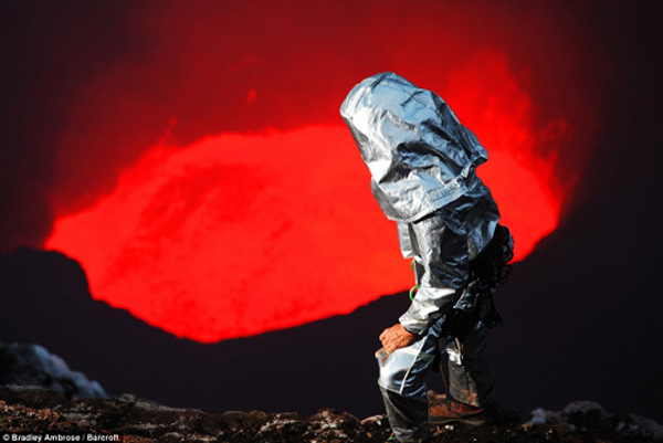 冒险家杰夫·麦凯里于8月实现了自己一个梦寐以求的愿望,他成功进入一座活火山口,并在距离滚烫岩浆不到30米的地方坐下观赏,成为全世界第一个在如此近距离欣赏炽热岩浆的人。
