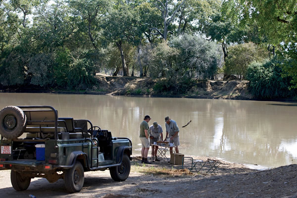 从我到那儿的一刻起,费雷拉便和我说他决心要帮助我“刺激”一把。当我问他这句话究竟是什么意思时,他只是答道,“你得经历一次,然后你就知道了。”费雷拉的营地比较小,只有七顶帐篷,而且常常都住满了回头客,他们来到这儿不仅是为了观赏野生动物和欣赏马纳波尔斯的自然美景,也是为了与津巴布韦游猎界最出色的人物之一──费雷拉──呆在一起。由于时节尚早,他对狮子日间在哪些地方活动不是很有把握。每天早晨他都独自驾车追踪他最喜欢的动物,然后再把游客带去观赏这些动物。