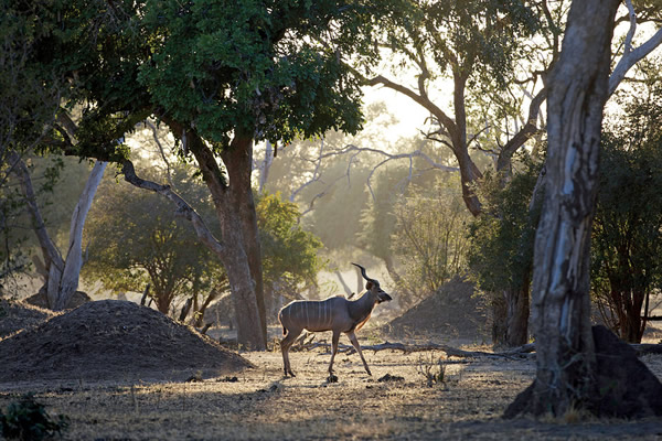 马纳波尔斯保护区内,一头雄性扭角林羚沐浴在晨曦中