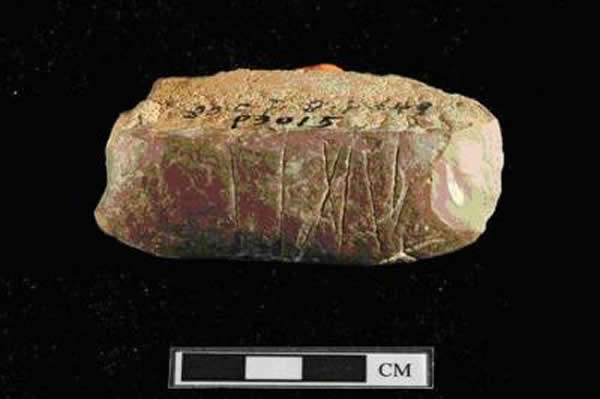 考古学家在宁夏水洞沟旧石器遗址发现一件带有刻划痕迹的石器。这是首次在中国旧石器遗址中的非有机质遗物上发现刻划痕迹。该发现已由中国科学院古脊椎动物与古人类研究所高星、彭菲等人撰文,发表于2012年第26期《科学通报》。
