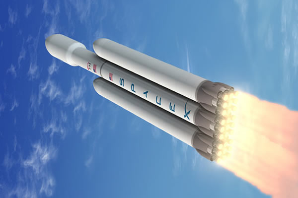 “重型猎鹰”由标准的“猎鹰-9”火箭捆绑两个液体燃料箱作为推进级,推力为1700吨。它虽然无法一次发射月球任务所需的所有设备,但可以分批发射各种不同设备。
