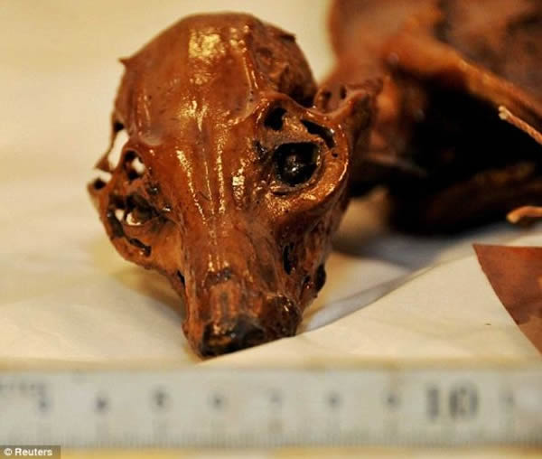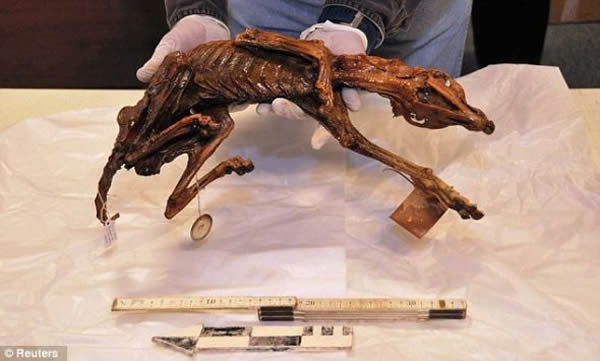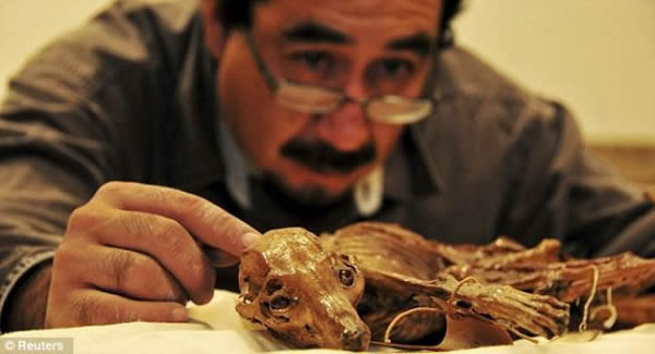 考古学家尤里-德-罗莎说:“这是具有考古学意义的第一具木乃伊狗。沙漠和干旱环境导致这只狗自然风干成木乃伊。它的皮肤变干,贴在骨头上,这是自然形成的木乃伊。”科学家不久将对这个远古猎犬进行测量、X光和碳检测,以便确定它的准确年龄及品种。