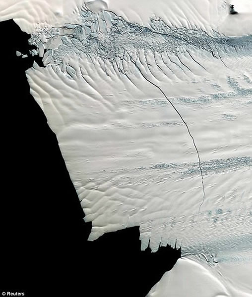 美国宇航局指出,冰川崩解属于自然现象,这个裂缝达到260英里宽,最大的裂缝宽度达到800英里,深195英尺。