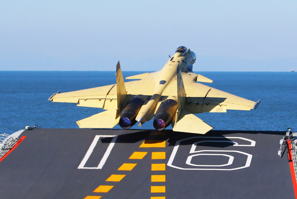 中国第一艘航母“辽宁舰”交接入列后,海军官兵以科学求实的态度和顽强拼搏的精神,按计划迅速投入紧张的出海训练和科研试验任务中。期间,顺利进行了歼—15飞机起降飞行训练。航母平台和飞机的技术性能得到了充分验证,舰机适配性能良好,达到了设计指标要求。