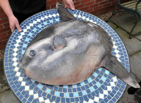 一名居住在英国东海岸的男子在遛狗时发现一条重约38公斤的翻车鱼。这条翻车鱼虽然重约38公斤,但是它仍然是条小鱼。一条成年翻车鱼可以长到4.2米长,3.1米宽,重量可以达到2267公斤。翻车鱼一般生活在英国西海岸几千公里外的大西洋中,在英国东海岸发现它极其罕见。