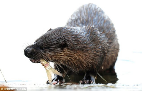 据抓拍到这一场景的摄影师称,在如此寒冷的冬天,这只水獭曾多次跳入河中捕食,直到它吃饱后才最终离去。它的捕鱼技能十分娴熟。