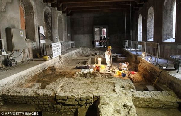 考古学家在佛罗伦萨中世纪的圣乌尔苏拉修道院进行发掘工作,他们在这里发现这具骸骨