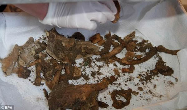 这颗头骨是在圣乌尔苏拉修道院最初的地面下大约5英尺(1.52米)处发现的,与之一起发现的还有很多其他人类肋骨和椎骨