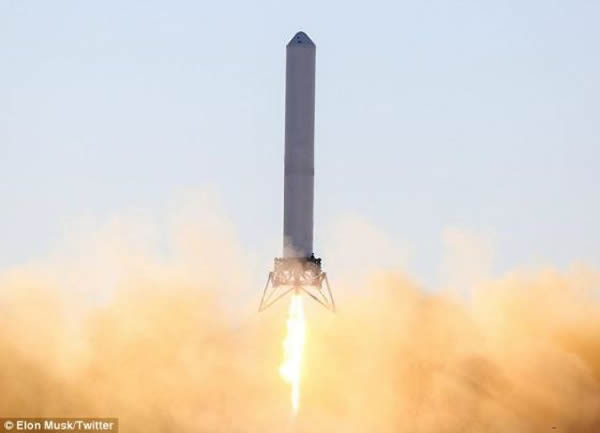 美国太空探索技术公司成功试射可重复使用火箭“蚱蜢”的原型