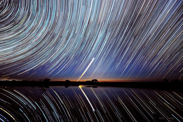 Amateur astronomer Alex Cherney captured these star trails as they blazed above Lake Tyrrell, a salt lake in Victoria, Australia in October 2011 and posted to The World At Night website December 25, 2012.