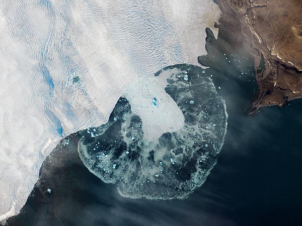 The Moshniy glacier, located on the Russian archipelago Novaya Zemlya in the Arctic Ocean, calves chunks of ice and debris into a pattern reminiscent of broccoli in an image released December 20.
