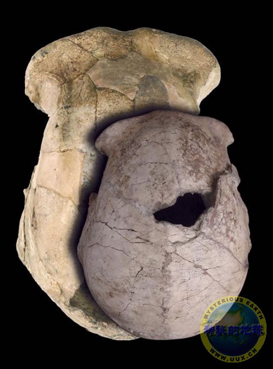 图片所示为新发现的“直立人”化石(被称为KNM-ER 42700的部分颅骨),同时还有来自坦桑尼亚的最大的非洲“直立人”OH 9。