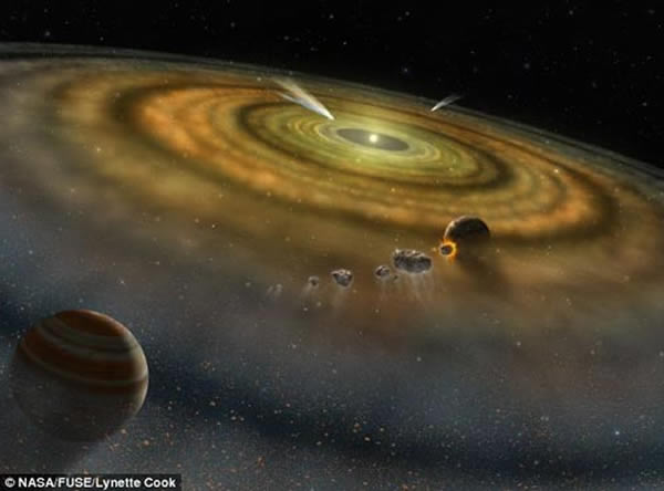 艺术家描绘的贝塔绘架星系统中行星形成阶段出现的彗星