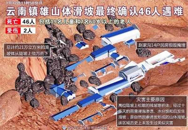 1月11日上午8时20分,云南省镇雄县果珠乡发生特大山体滑坡,造成46人遇难,让公众了解到山体滑坡这种地质灾害的巨大破坏力。今天,记者就山体滑坡的相关知识采访了中国地质调查局水环部地质灾害处的李铁锋。