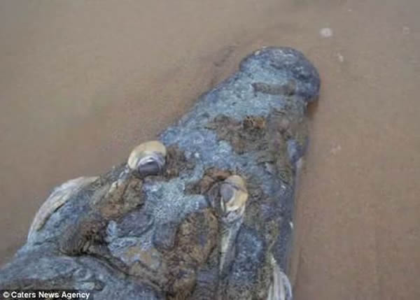 南非海滩惊现疑被鲨鱼杀死的鳄鱼残骸