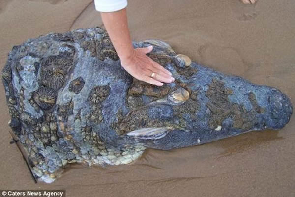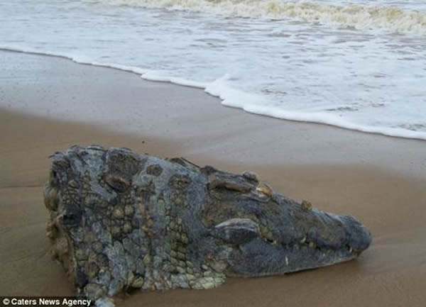 据英国《每日邮报》1月13日报道,近日,一只鳄鱼头颅被海水冲到了南非海滩上。当地人猜测,凶手可能是只鲨鱼。