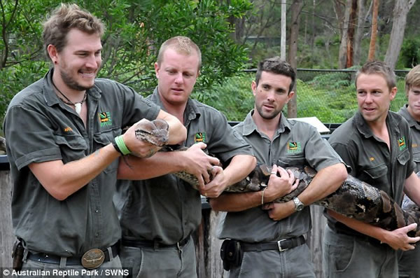 福克纳说:“在野外,从短吻鳄和巨蜥,到任何温血动物,几乎没有网纹蟒不吃的。它有很多相当危险的方面,如果它缠住一名管理员,它就会死死缠住不放。即使我们能够让它松开,最终管理员也会被勒断几根肋骨。但是比这更可怕的是它的牙齿。尖牙一旦刺入肉内,就很难摆脱掉。”