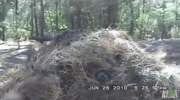 据报道,这个类似巢穴的物体是在2010年6月被发现的,并在美国动物星球频道的《寻找大脚怪》系列节目中播出。然而,关于这一神秘巢穴的视频未能提供大脚怪曾在里面居住过的证据。