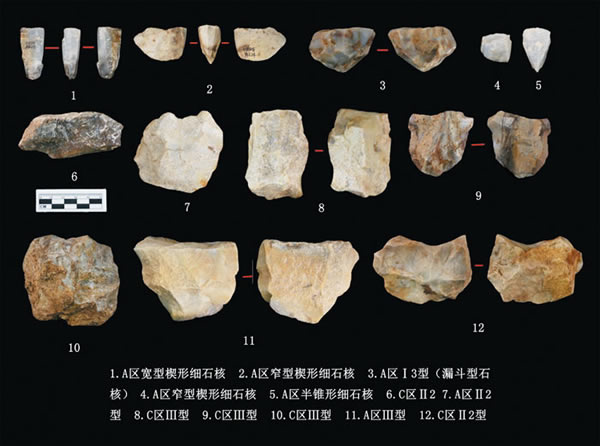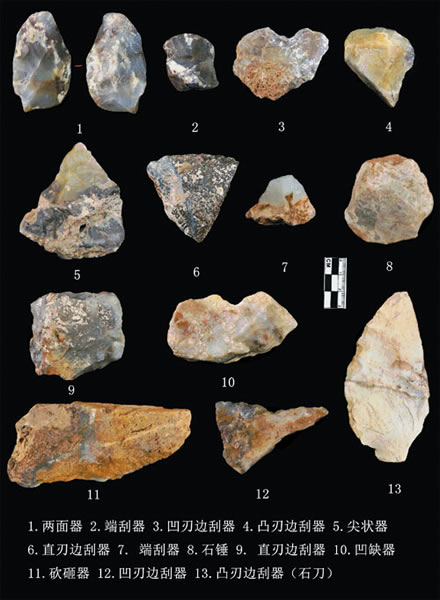 原生地层共有6个自然层,其中至少包括3个文化层。石制品全部出土于第1、2自然层。文化层共出土石制品130余件,石制品类别包括石核、石片、工具、断块和残片,以断块和残片数量最多,工具以边刮器为主。石制品原料全部为燧石岩块,剥片技术和加工技术均为硬锤,属于中国北方的石核-石片-刮削器主工业范畴。