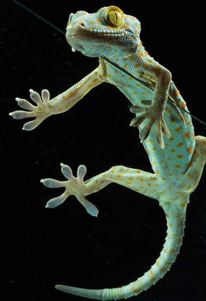Microscopic hairs on a female tokay gecko's feet adhere to surfaces.