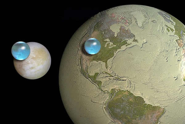 科学家认为,在欧罗巴厚厚的冰层之下是浩瀚的海洋,其中储存的水量比地球上的水还要多。