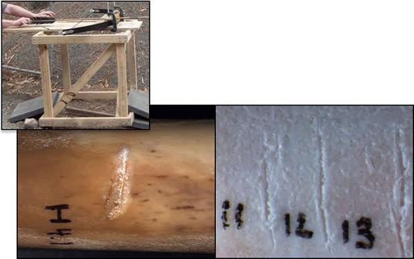 O’Driscoll和同事敲断了在非洲发现的中石器时代的长矛和箭头的燧石复制品,然后将它们绑在木杆上。在一些昆士兰大学学生的参与下,他进行了15个试验,对着羊和牛的尸体,投掷长矛复制品,以及利用弓箭或有刻度的弩发射箭头复制品。通过煮沸这些尸体或埋葬它们以便让细菌和昆虫快速侵蚀,O’Driscoll在骨头上找到758处伤痕,并与收集自屠宰动物骨头的实验创造参考资料中的201处切痕进行了比较。