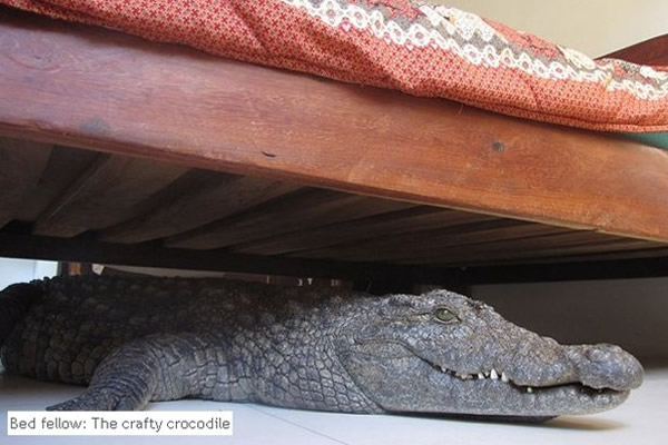 据悉,这条鳄鱼静悄悄地在这名名叫Guy Whittall的男子的床底下。第二天早上,他坐在床边,筹划着新一天的日程,仍旧没有意识到脚底下的这条鳄鱼。随后,一名佣人前来报告事情,发现这条鳄鱼时惊叫了一声,Guy这才意识到了。