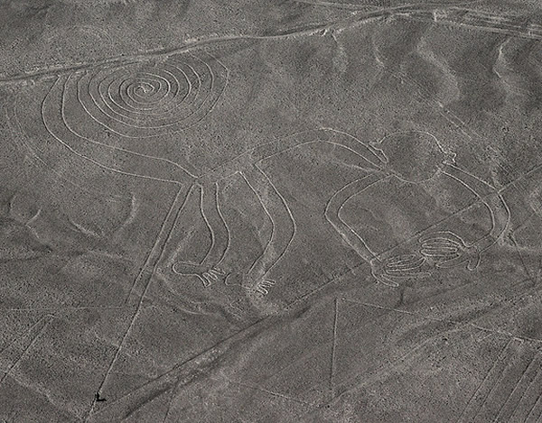 纳斯卡线是位于纳斯卡沙漠地面上的巨大图形,在1939年由美国考古学家保罗•柯索发现,其图案包括鱼、蜂鸟、猴子、蜥蝪等,学者判断这些线条是由西元400年至650年间的纳斯卡文明所创造。由于纳斯卡线必须从高空往下看才能出完整图型,所以过去也有人说这是外星人的创造物。
