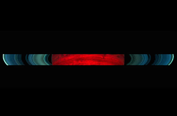 Visible-light images from this vantage point would show Saturn dimly lit, with sunlight reflecting off the planet's rings. But, through infrared eyes, which sense thermal radiation, the heat from Saturn's interior lights up the entire planet.