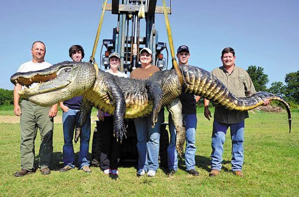 布鲁克曼介绍说,这场人与鳄鱼的搏斗持续了4个半小时,他说:“当时我们开着摩托汽艇沿着密西西比河紧追这条鳄鱼,因为我们想靠近用矛刺死它。谁知它太狡猾,很难靠近,我们只好用诱饵,设圈套让它浮出水面,最后开枪把它击毙。之后,我们叫来另一狩猎组,大家一起才把这条巨大的鳄鱼拖到岸上。”