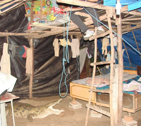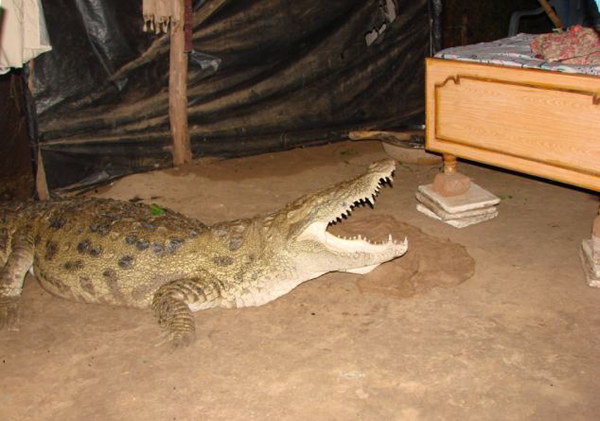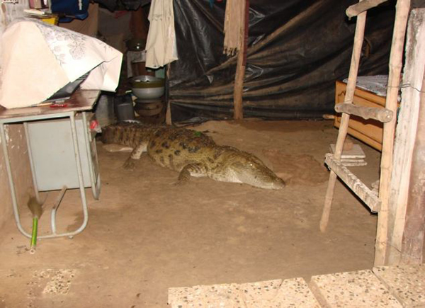 丈夫Kanubhai Sholiki说,有天夜里他们听到屋里有响声,当他们打开灯时,发现了这个不速之客。他赶紧和妻子离开房间并向当地的野生动物保护组织求助。在野生动物救援队与当地防止虐待动物协会的合力营救下,这只鳄鱼被成功从房间中救出。在这个过程中没有人受伤。