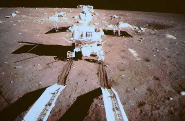 China Moon Landing: Rover Rolling at Bay of Rainbows