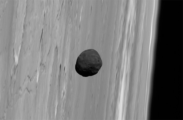 Mars Express Orbiter Buzzes Martian Moon Phobos