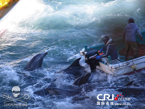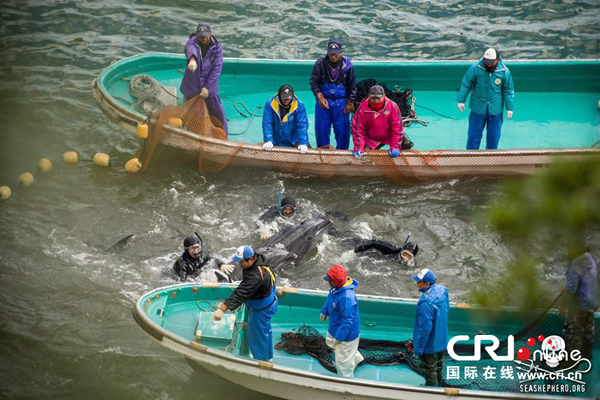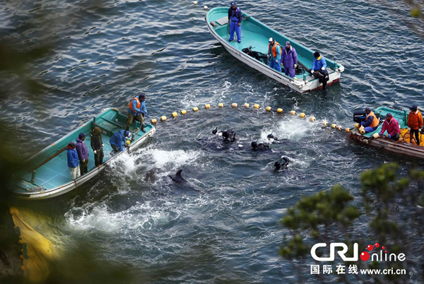 日本太地“海豚湾”渔民围捕海豚 来源: 神秘的地球 时间:2014年1月21日 13:37 (神秘的地球)据国际在线:当地时间2014年1月20日,日本太地“海豚湾”,日本渔民围捕入网的海豚。 美国驻日本大使卡罗琳·肯尼迪17日在微博客网站上发帖,批评日本渔民以“围捕”方式捕猎海豚“不人道”;但海豚湾的捕猎活动并未受到影响。 上一篇 下一篇 TAG: 海豚 日本