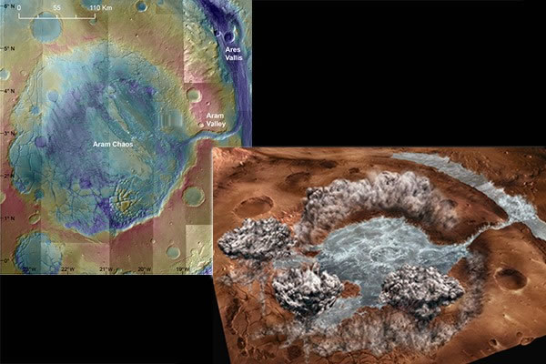 之前,一些研究小组提出,当时,随着来自这颗红色星球深处的熔融物上升,巨大的地下冰库突然融化,进而引发洪水。也有研究人员认为,这些水从远方经由含水层被运送到这里,然后不知怎么地突然释放出来。一个新假设认为,阿伦混沌内部及周边的混沌地形是由于陷入古老撞击坑的地下冰湖突然崩塌形成的。在这一情境中,在于35亿年前形成后不久,4.2千米深的火山口开始聚拢水份。那时,在1.5千米甚至更深的湖被冻结后,风飘型沉积物开始在其表面积累。一旦这些物质的厚度达到2千米,就会阻碍从火星内部传递热量,并使得这些热量融化大部分被埋藏的湖冰。最终,大约在25亿年前的一天,沉重的沉积物导致湖面冰层崩裂,无边无际的水溢到地表。研究人员计划将相关成果在线发表于本月的《伊卡洛斯》期刊上。
