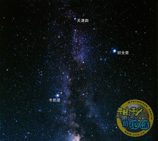 中科院紫金山天文台研究员王思潮提醒说,7日夜,可找一处不受城镇灯光影响的安全地方,仰头静望,在头顶附近,银河中间与两边有3颗明亮的星星,其中最亮的一颗呈青白色,它在银河西北边,这就是人们口口相传的织女星。织女星的下方有4颗较暗的星,组成小小的平行四边形,它们就是神话传说中织女编织的美丽云霞和彩虹的梭子。另一颗亮星在织女星的南偏东,即银河的东南边,它就是晶光四射的牛郎星。牛郎星是颗微黄色的亮星,在它两边的两颗小星叫扁担星,传说中是牛郎挑着一对儿女。
