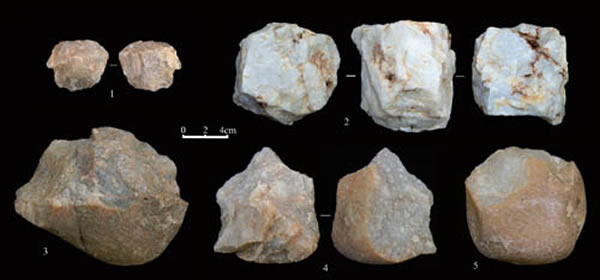 图1 贾湾1 号地点发掘所获部分石核。(牛东伟供图)