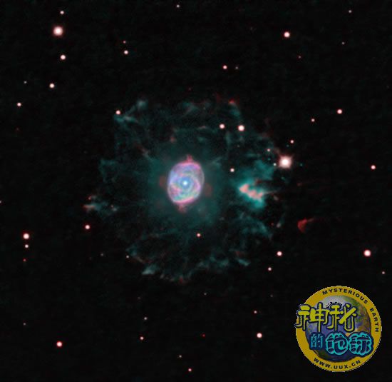 天龙座有一个著名的星云,编号为NGC6543,它有一颗中心亮星,却不易观察到。由于亮星周围包裹着一圈很明亮的蓝绿色气体壳,样子看上去酷似猫眼,所以这个星云也叫做猫眼星云。猫眼星云是一个典型的行星状星云,距离我们约3000光年,是一颗雷太阳恒星在生命的最后阶段所呈现的美景。行星状星云中心快要死亡的恒星会一次次向外喷发物质形成美丽的壳层图案。