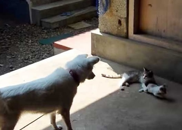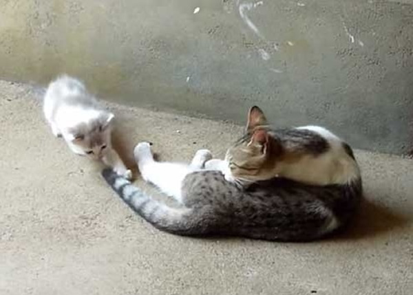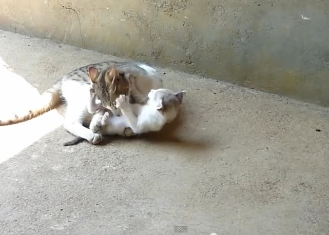 大猫欺负小猫 大狗出声喝止 来源: 神秘的地球 时间:2014年9月02日 16:07 小猫把玩大猫的尾巴,将大猫惹怒。 大小猫咪扭作一团,打得难分难舍。 大狗喝止大猫暴行。 (神秘的地球报道)互联网流传的一段影片显示,一只小猫招惹身旁正在休息的大猫,终于把猫大哥惹怒。大小猫咪在墙边打得难分难舍,大猫靠体型优势完全将小猫压制在地,小猫忍不住发出喵喵哀叫声。 此时,一旁的大型白狗终于看不下去,出面喝止大猫暴行。网友称赞它是狗界“正义哥”! 上一篇 下一篇 TAG: 狗 猫