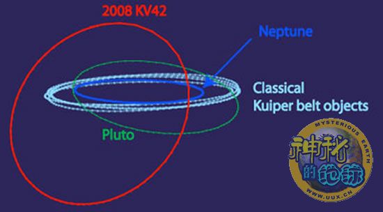 科学家将这颗彗星命名为“2008 KV42”,它的运行轨道相对于地球轨道平面(又称为黄道)呈104°倾斜,相对其他星体反向环绕太阳运行。