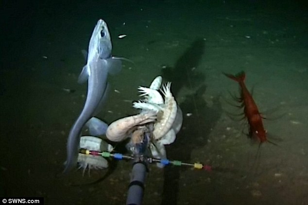 照片展示了生活在23005英尺(约合7012米)的长尾鳕、十足类动物和狮子鱼。阿伯丁大学的杰米森博士说:“知道这些动物的存在是一回事,但在自然栖息地中看到它们甚至发现它们和其他物种相互影响又是另一回事,真的令人吃惊。我们已经学到很多。”