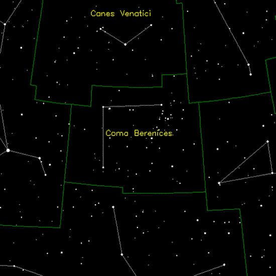 后发座是一个黯淡的小星座,其中最亮的一颗星也只有4m。不过,这个星座几颗主要的星正在猎犬座α星、牧夫座的大角和狮子座β星所连成的三角形中,所以找起来倒不太困难。