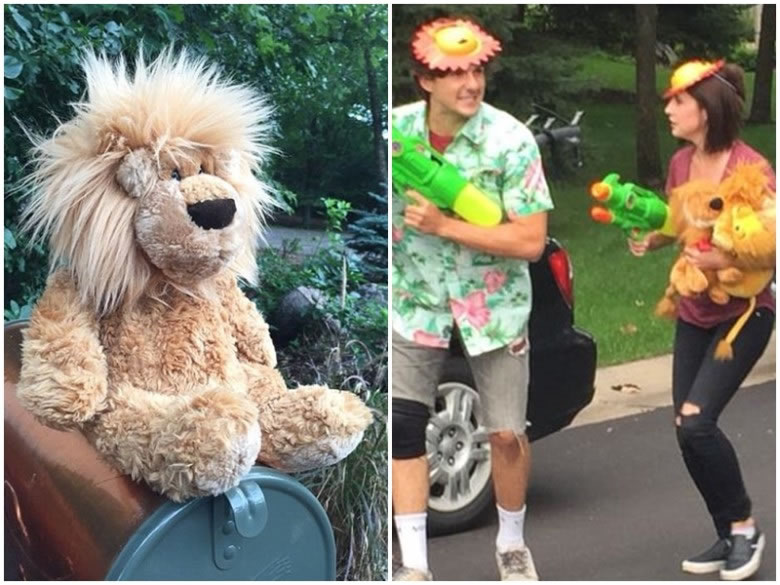 有示威者戴“狮子”上阵(右图),并手持水枪,斥不耻帕尔默之举。