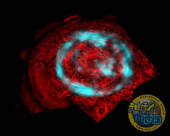 卡西尼探测器以两种不同的红外线波长捕捉到土星极地神秘的极光现象