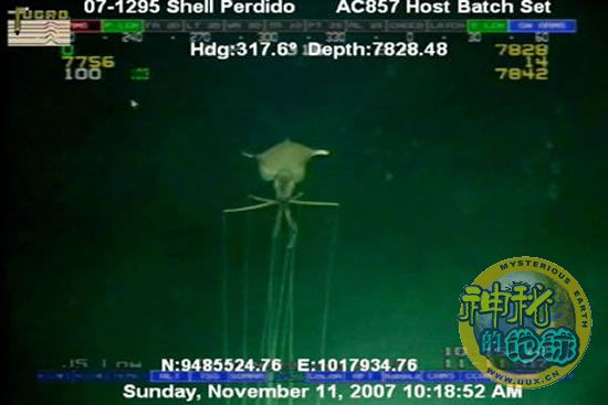 此段影像是由壳牌石油公司的遥控航行器(ROV)拍摄的,当时它正在距离美国休斯顿320公里之外的水域进行一次深海探测。而壳牌石油公司在此进行石油和天然气开发。