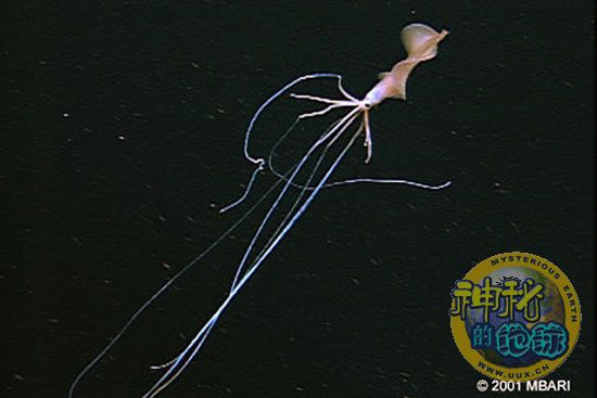 在深海拍摄的鱿鱼Magnapinna