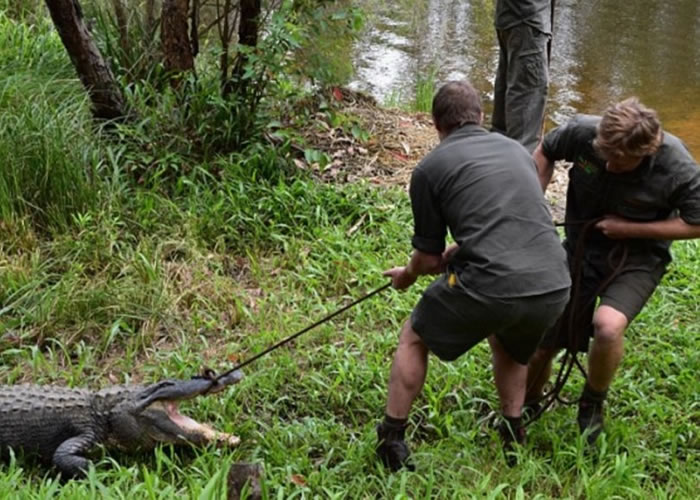 (神秘的地球报道)澳洲爬虫类动物园周二展开“鳄口抢蛋”行动,安排职员到产下51只鳄鱼蛋的雌性美洲短吻鳄“贝齐”的巢穴,取走鳄鱼蛋,以避免鳄鱼蛋遭到其他鳄鱼吞食并协助幼鳄孵化。