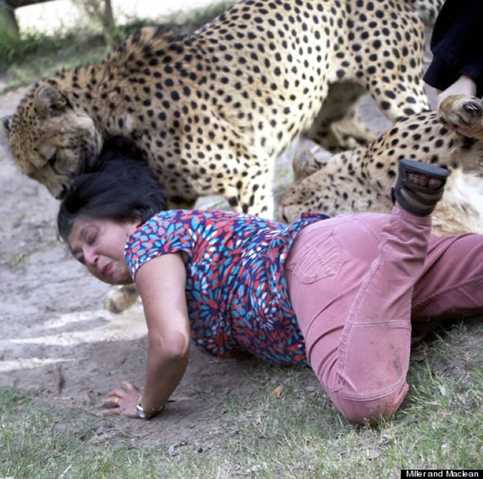 当时,猎豹发疯的撕咬女孩的腿。苏格兰家庭主妇上前一步试图帮忙。