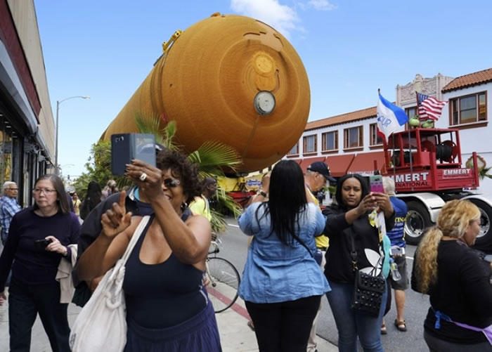 (神秘的地球uux.cn报道)美国太空总署(NASA)的航天飞机早已退役,但它在不少美国人心中占有一个重要的地位。NASA最后一个航天飞机外置燃料缸,昨日完成长达19小时的货车运送旅程,抵达加州科学中心,沿途有大批民众围观目送。它将与退役航天飞机奋进号及固体火箭助推器一同展出。
